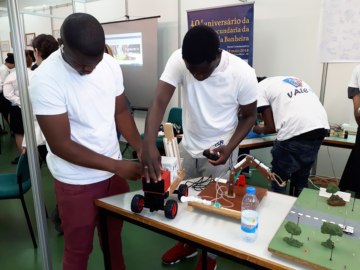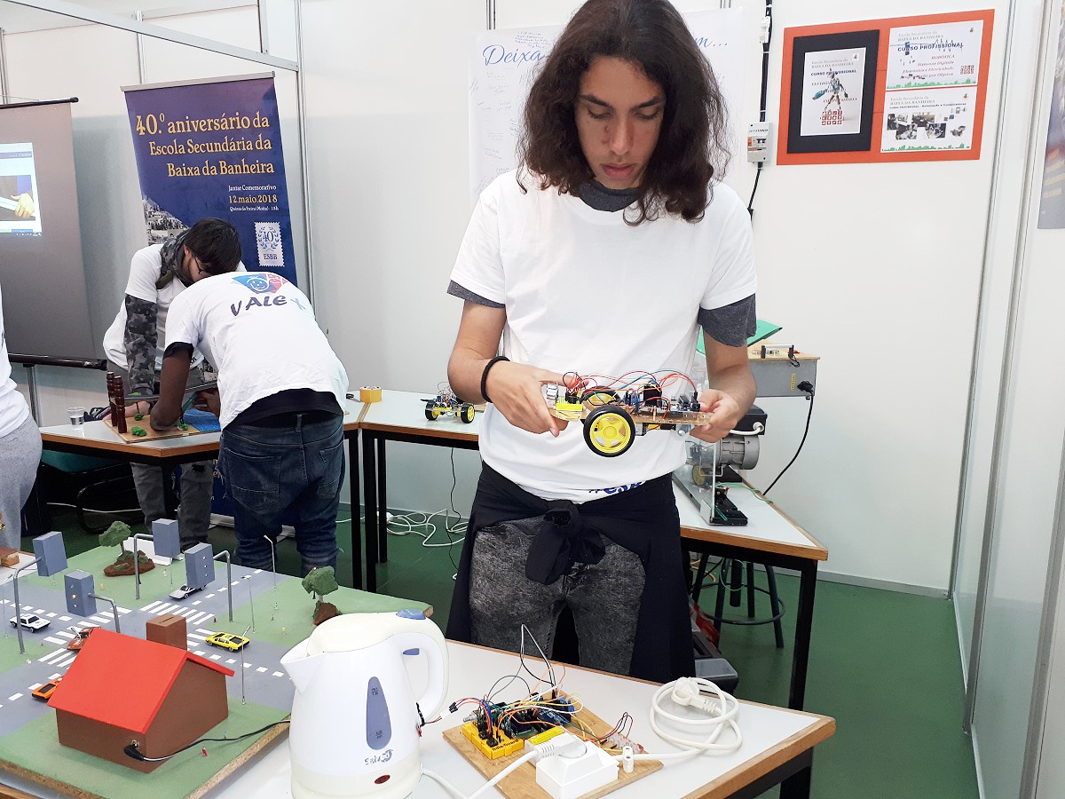 Participação da turma do 11º ano do curso de Eletrónica, Automação e Computadores na XXI Feira de Projetos Educativos da Moita 2018. Maio 17, 2018 por ESBBadmin2017