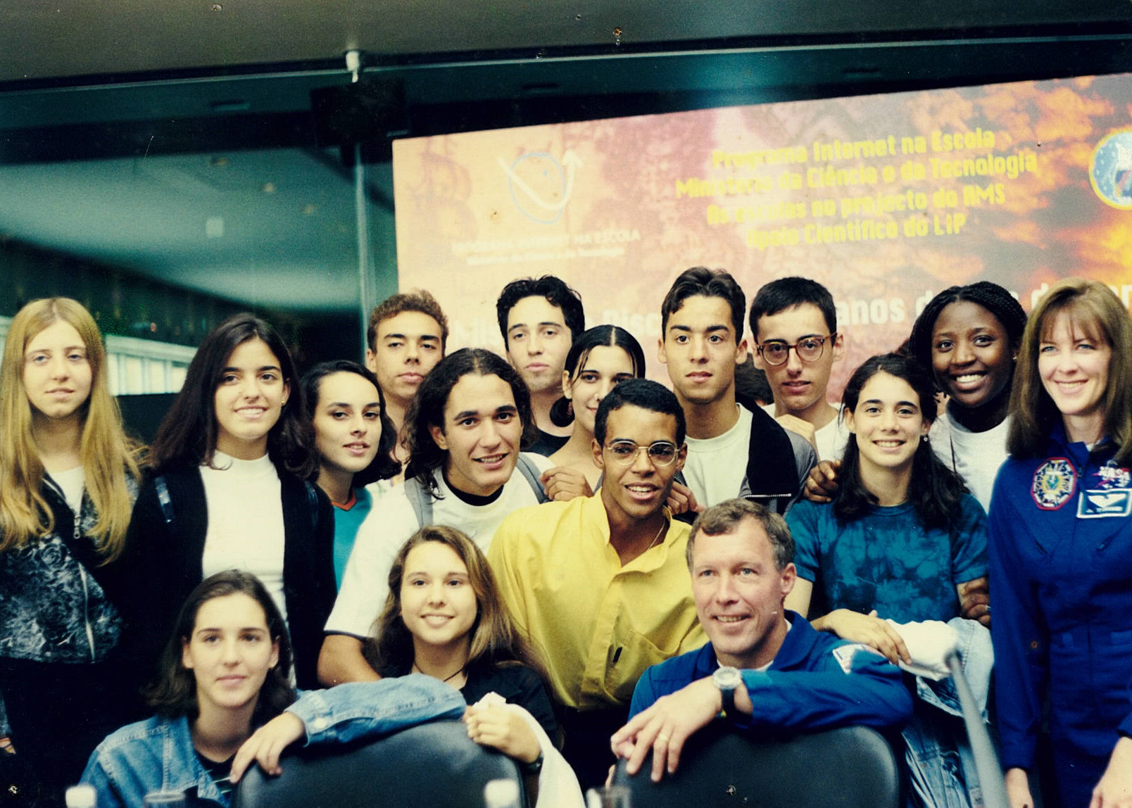 Com mais quatro escolas do país prepararam perguntas, com a ajuda de investigadores do Laboratório de Instrumentação de Física Experimental das Partículas (LIP), e fizeram-nas em direto do edifício Marconi para os astronautas em órbita no Space Shuttle que levava a bandeira de portuguesa e outros objetos comemorativos dos 500 anos da Viagem de Vasco da Gama para a Índia.